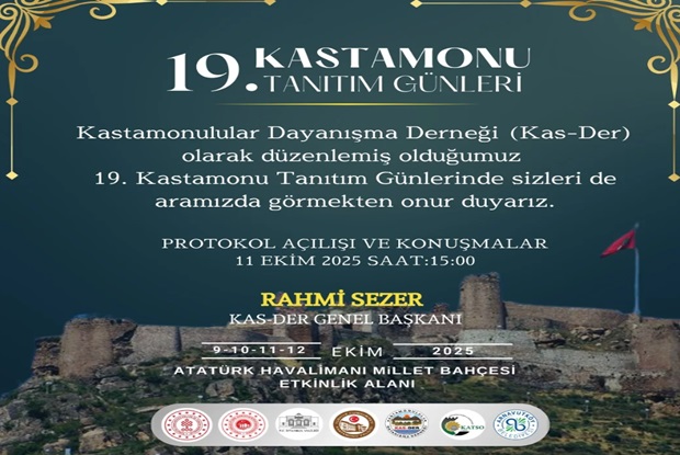 Kas-Der tarafından düzenlenen 19. Kastamonu Tanıtım Günleri Atatürk Havalimanı Millet Bahçesi Etkinlik Alanında Başlıyor. Tüm halkımız davetlidir.