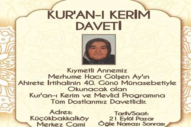 Dernek üyelerimizden Ataşehir Belediye Meclis üyesi Şerafettin AY’ın annesi merhume Hacı Gülşen AY’ın ahirete irtihalinin 40. günü...