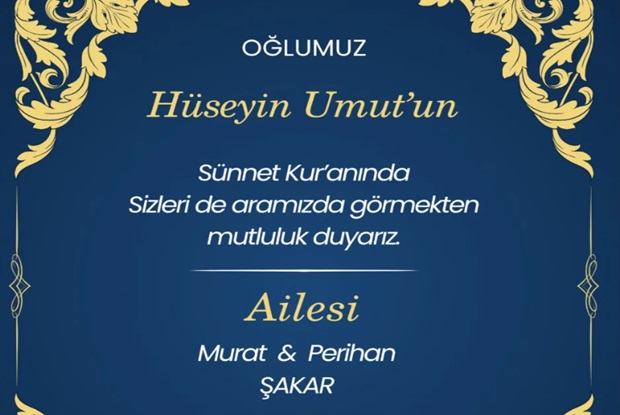 Önceki dönem dernek yöneticilerimizden Murat Şakar'ın, oğlu Hüseyin Umut' un 18 Ekim Cumartesi